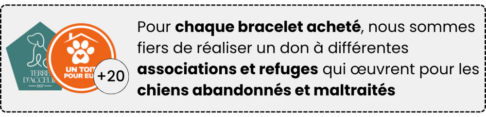 - Chaque bracelet acheté permet d'aider un chien en refuge !